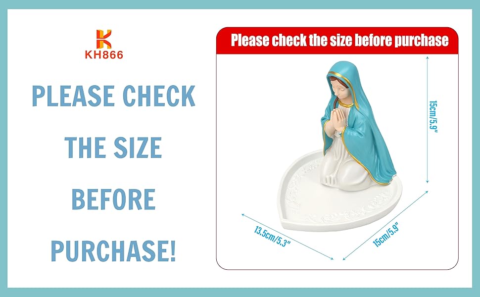 Exquisite Virgin Mary Rosary Holder Statue – This 5.9 inch Virgin Mary rosary holder statue beautifully depicts the Blessed Mother in a praying pose, symbolizing purity, holiness, and devotion. Our Lady's serene expression creates a sacred Christian and religious decoration for personal devotional use.