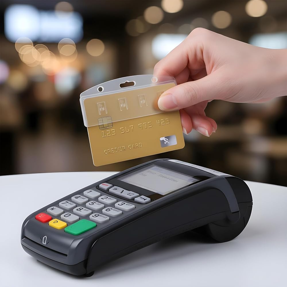 【Firm Card Grippers】This hard transparent protectors sleeve comes with four strong card clips to hold your cards securely, preventing them from falling or getting lost. The cards also slide easily for quick and easy access.