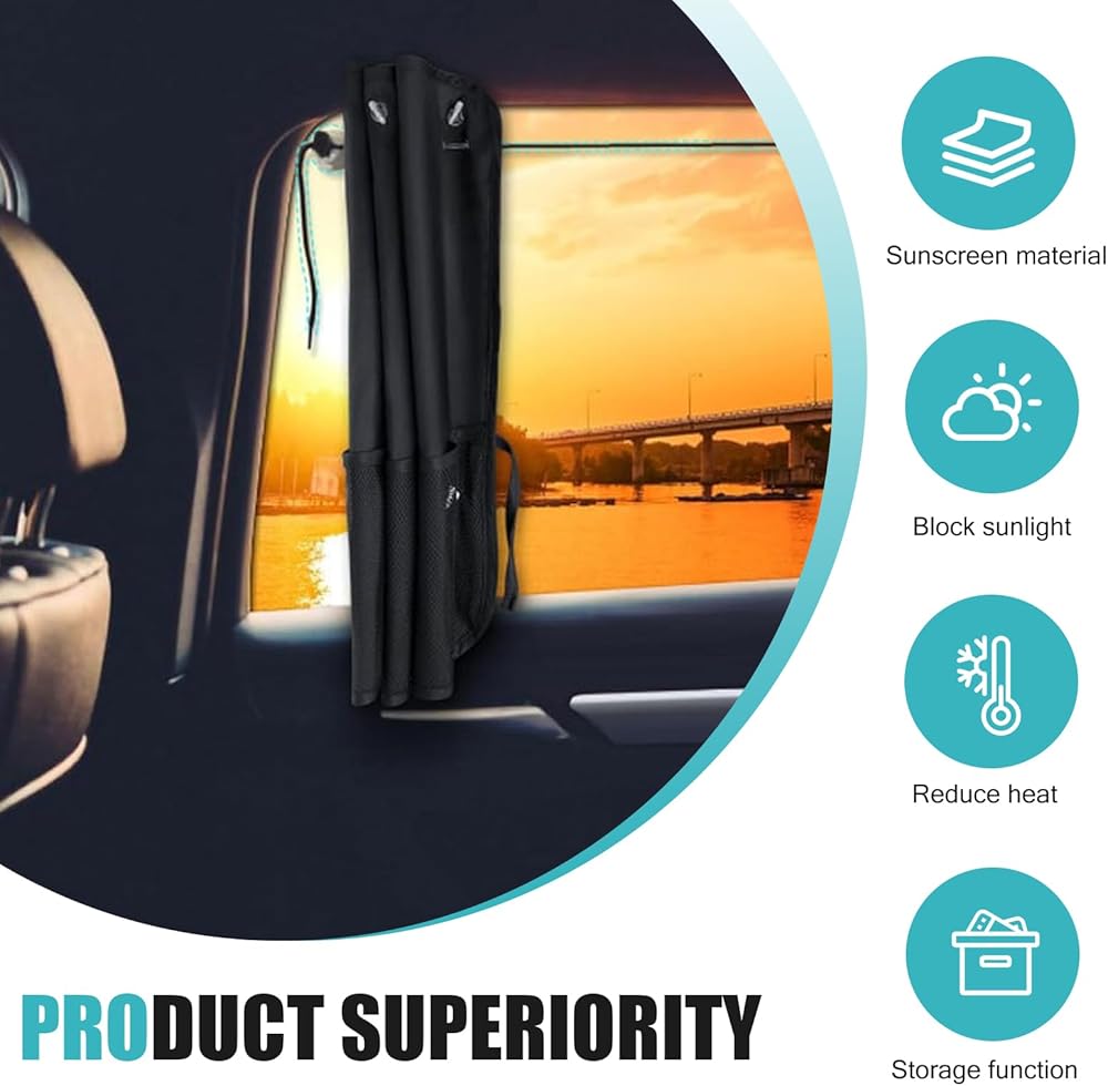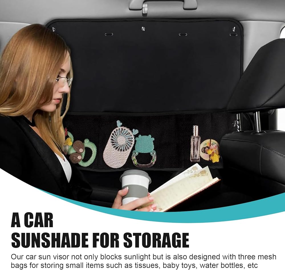 2-in-1 Storage Function: The mesh pocket design not only shades the sun, but also can be used as a storage bag inside the car to store small objects such as cell phones, coins, which is convenient and practical.