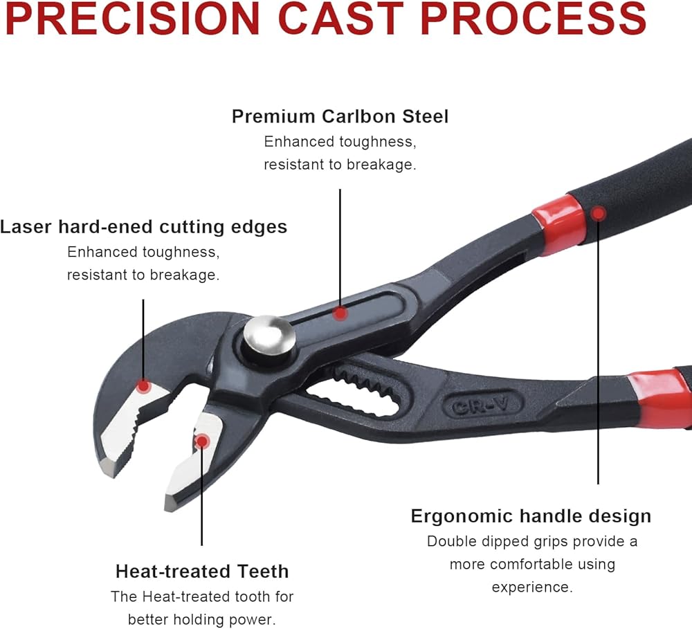【Multi-Application】- With the pliers multi-groove adjustment feature, they are perfect for loosening jammed or corroded nuts, bolts, pipes, and more. A must-have tool for plumbing, automotive, and general repair tasks.