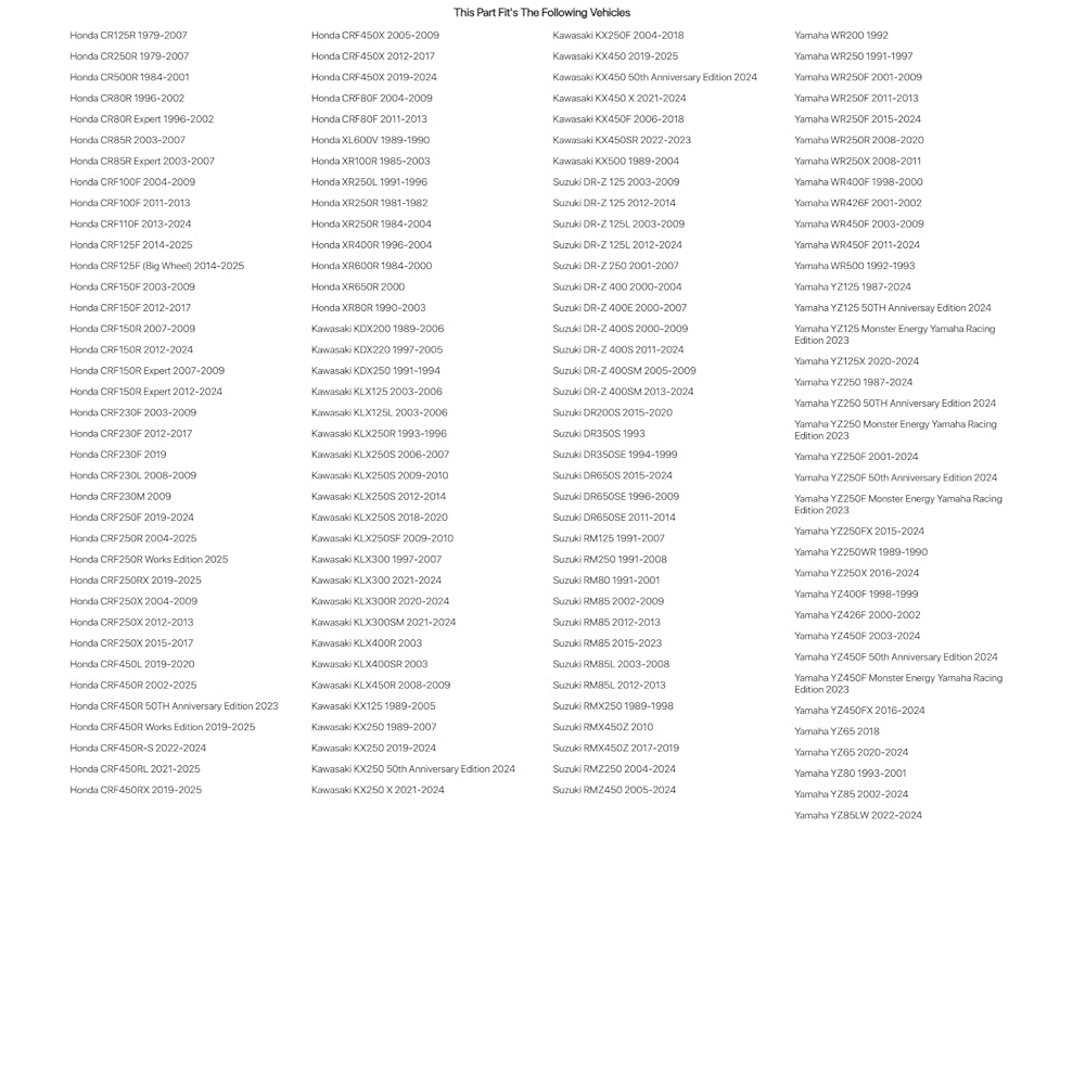See fitment guide image for additional Machines this item fits. This kit includes six class 10.9 zinc plated steel sprocket bolts with factory style class 10.9 Fuji metal-locking nuts and washers.