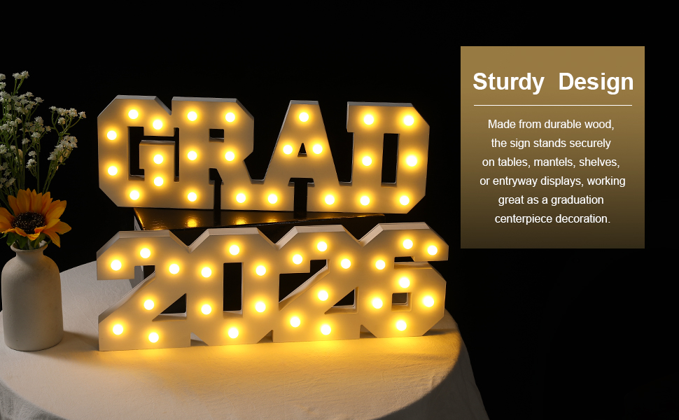 Sturdy Design:Made from durable wood, the sign stands securely on tables, mantels, shelves, or entryway displays, working great as a graduation centerpiece decoration.
