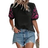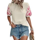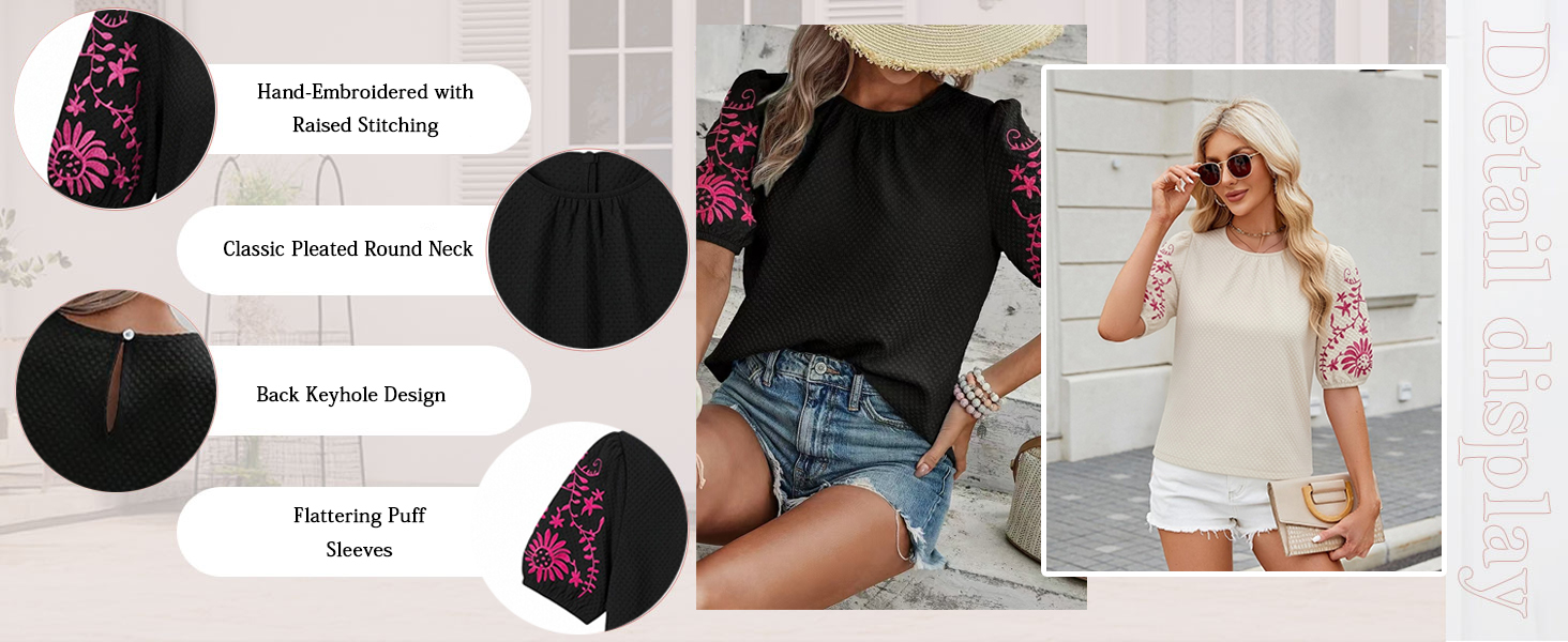 Features:The embroidered tops for women 2026 features with round neck and adorable puff sleeves,floral embroidery on the sleeves to elevate your style.A perfect addition to your basic wardrobe wardrobe collection.