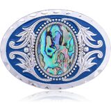 [ Belt Buckle Material ] Western belt buckles for men are made of high quality zinc alloy, durable and lightweight, not easy to break and fade. Silver blue belt buckle with a abalone shell pattern stone in the middle.