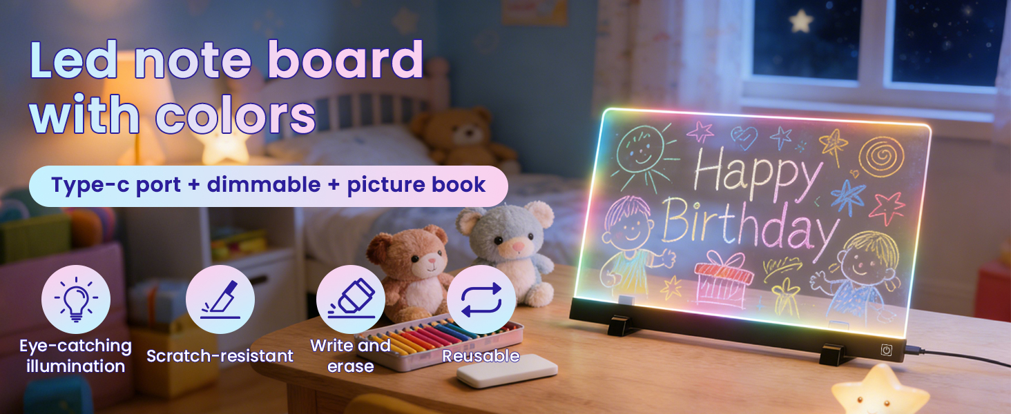 Safe Acrylic Design & Easy Erasing : Led message board features vibrant lighting colors and a smooth dry-erase acrylic surface. Made with shatterproof acrylic material and polished edges, it offers a safer creative experience for kids while supporting endless drawing and writing play