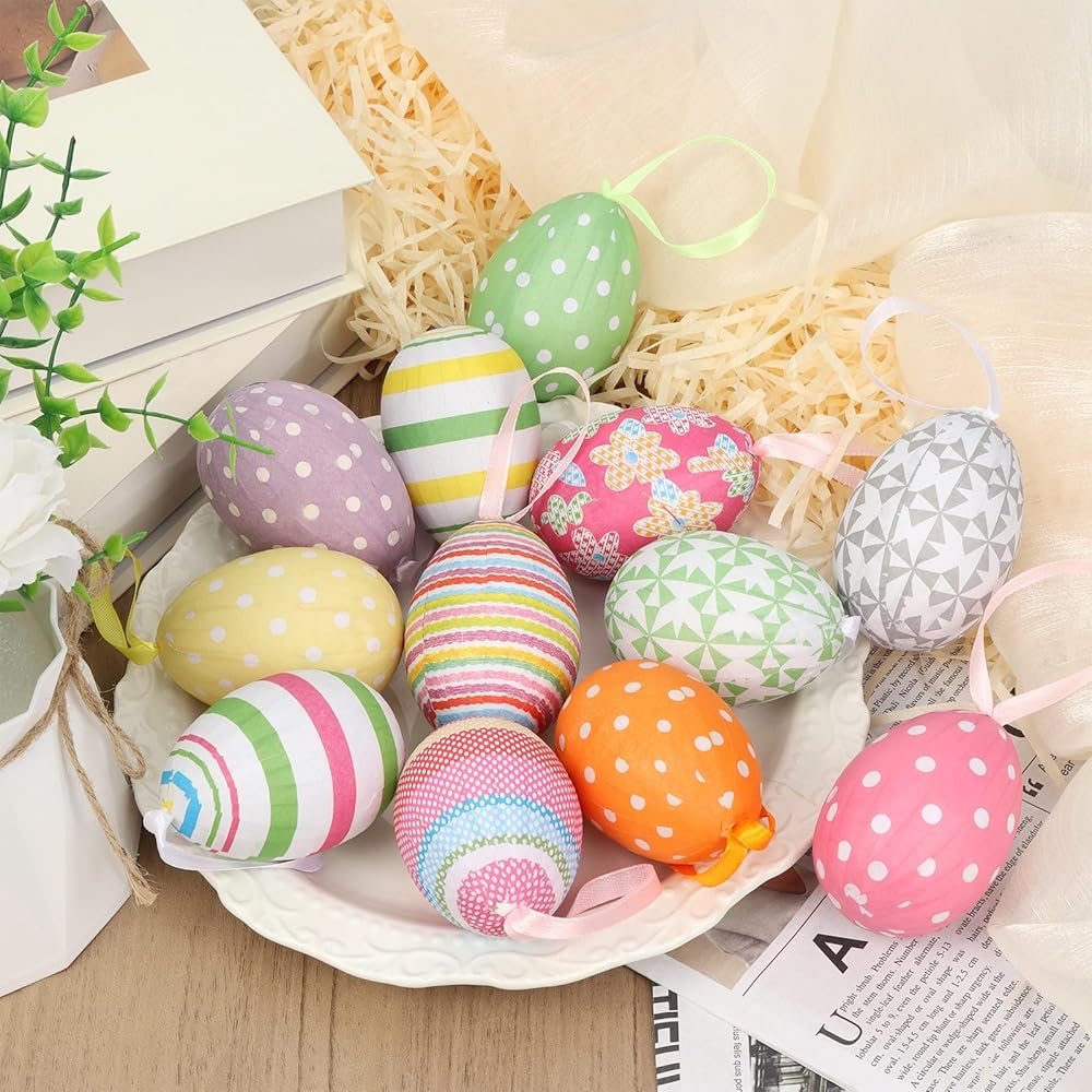 Package Contents: 12 Pcs colorful foam Easter eggs, 1 per style, sufficient quantity to meet your needs. Assort styles Easter eggs, suitable for decorating parties. Add more fun to Easter egg hunting game