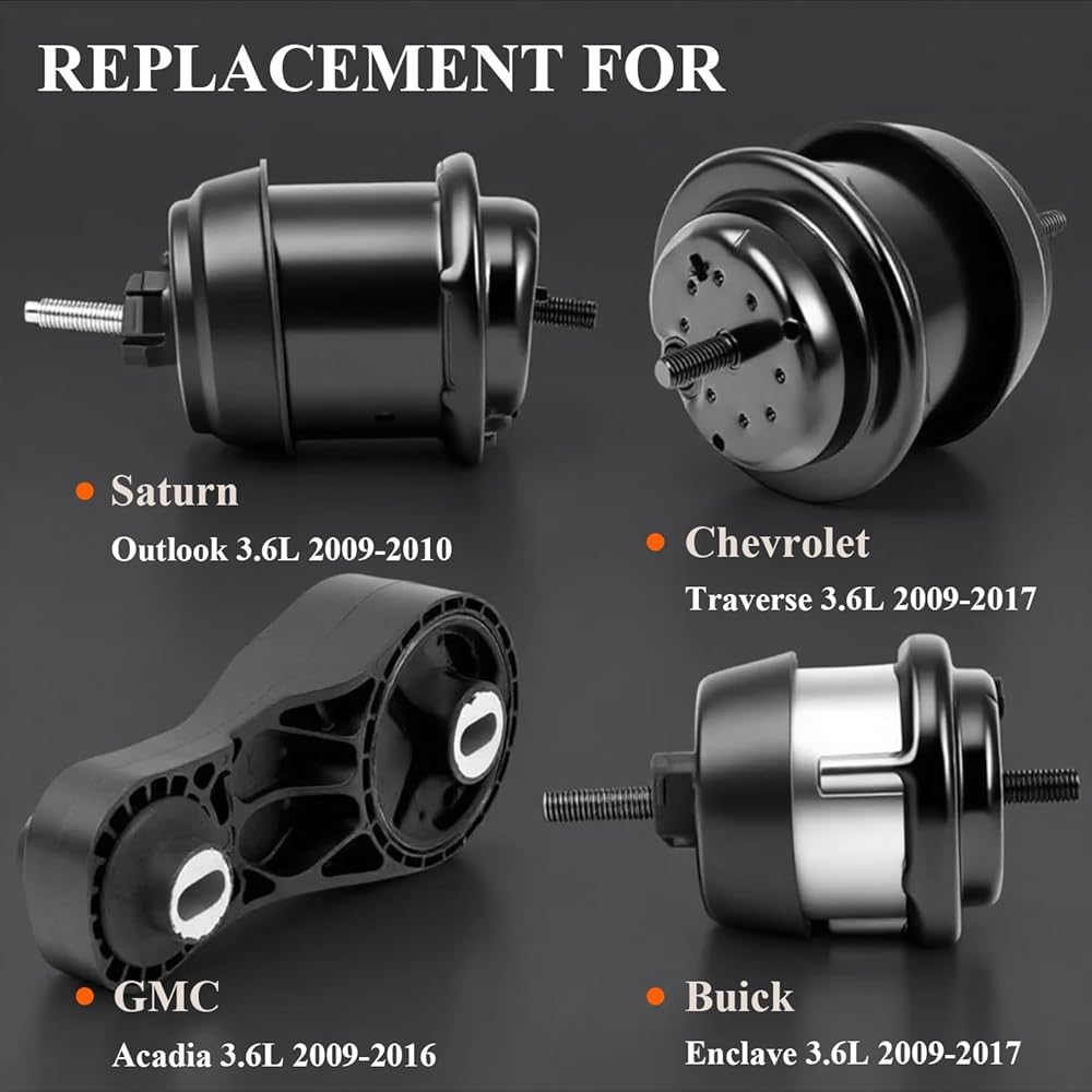 【Fit Vehicle Model】4PCS Engine Motor Transmission Mount Compatible with Saturn Outlook 3.6L 2009 2010, Acadia 3.6L 2009 2010 2011 2012 2013 2014 2015 2016, Traverse 3.6L 2009 2010 2011 2012 2013 2014 2015 2016 2017, Enclave 3.6L 2009 2010 2011 2012 2013 2014 2015 2016 2017, Before Purchasing This Order, Please see more years and models in product description.