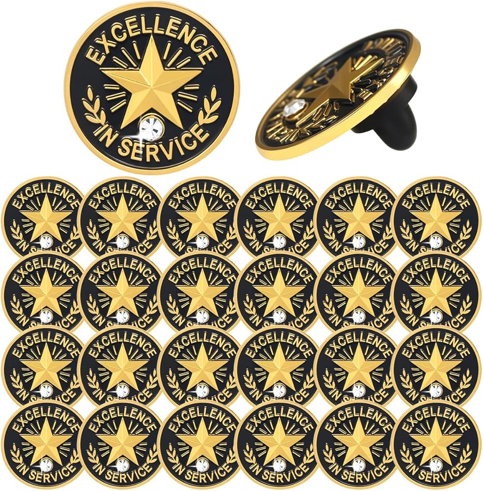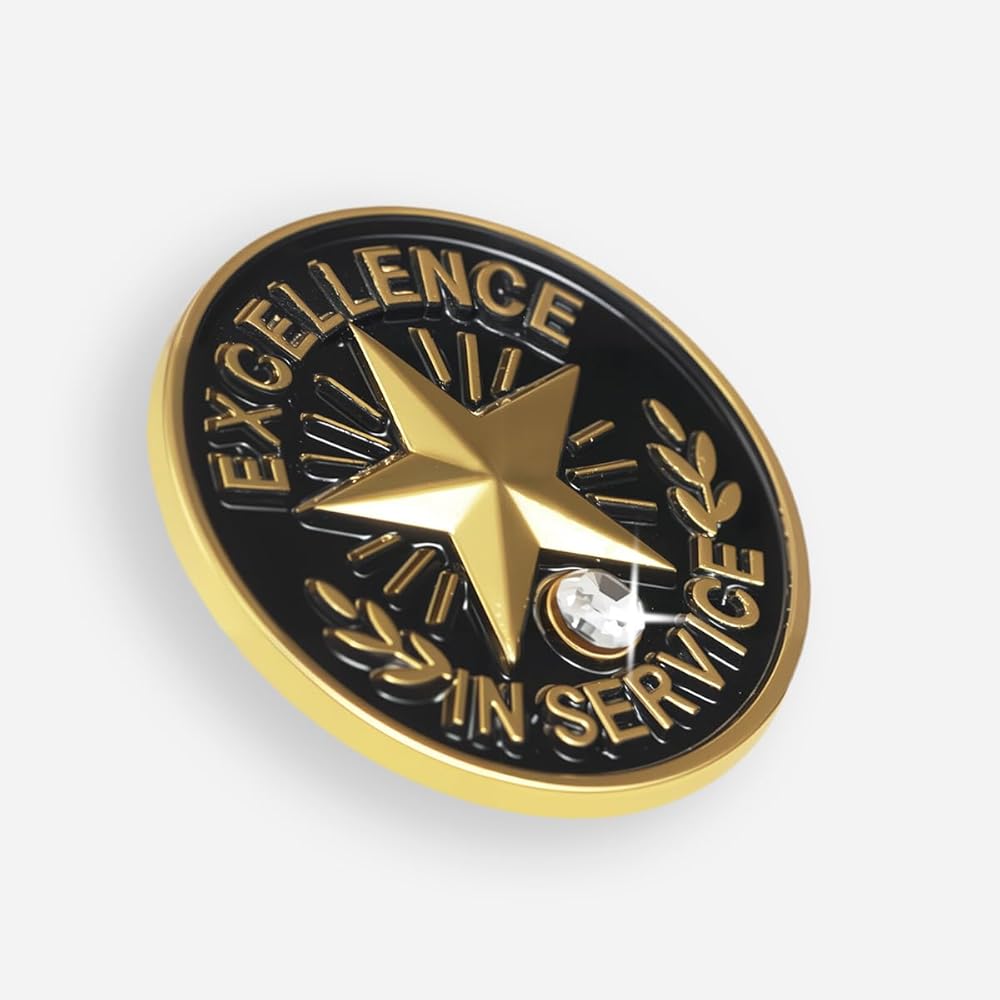 💎 Shine with Service Excellence Each pin features a radiant gold star with a sparkling rhinestone center, symbolizing exceptional dedication and achievement.