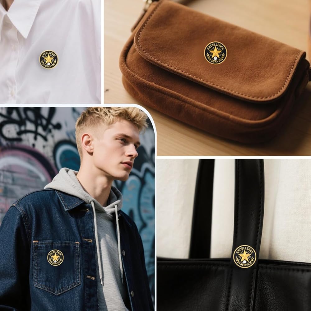 📌 Durable & Easy to Wear Design Push-pin backing ensures secure attachment on shirts, name badges, jackets, and uniforms without damaging fabric.