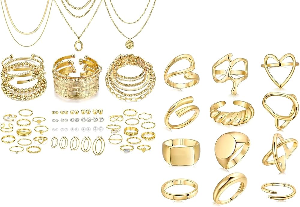 Gold Band Rings: You will get a 12 pieces gold ring set. Those rings come in many different styles, include heart, signet, square, tubular,chunky and twist ring. There are enough quantity to meet your different outfits, match a best look for yourself!