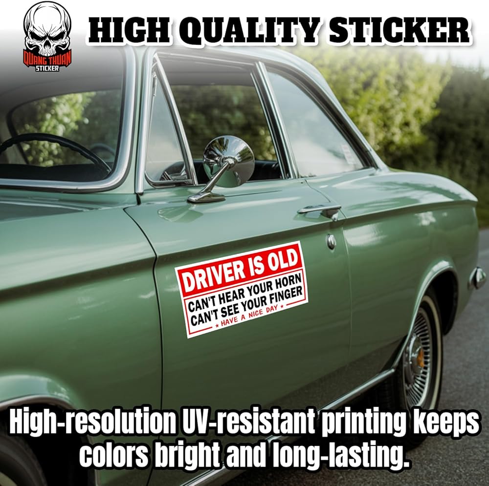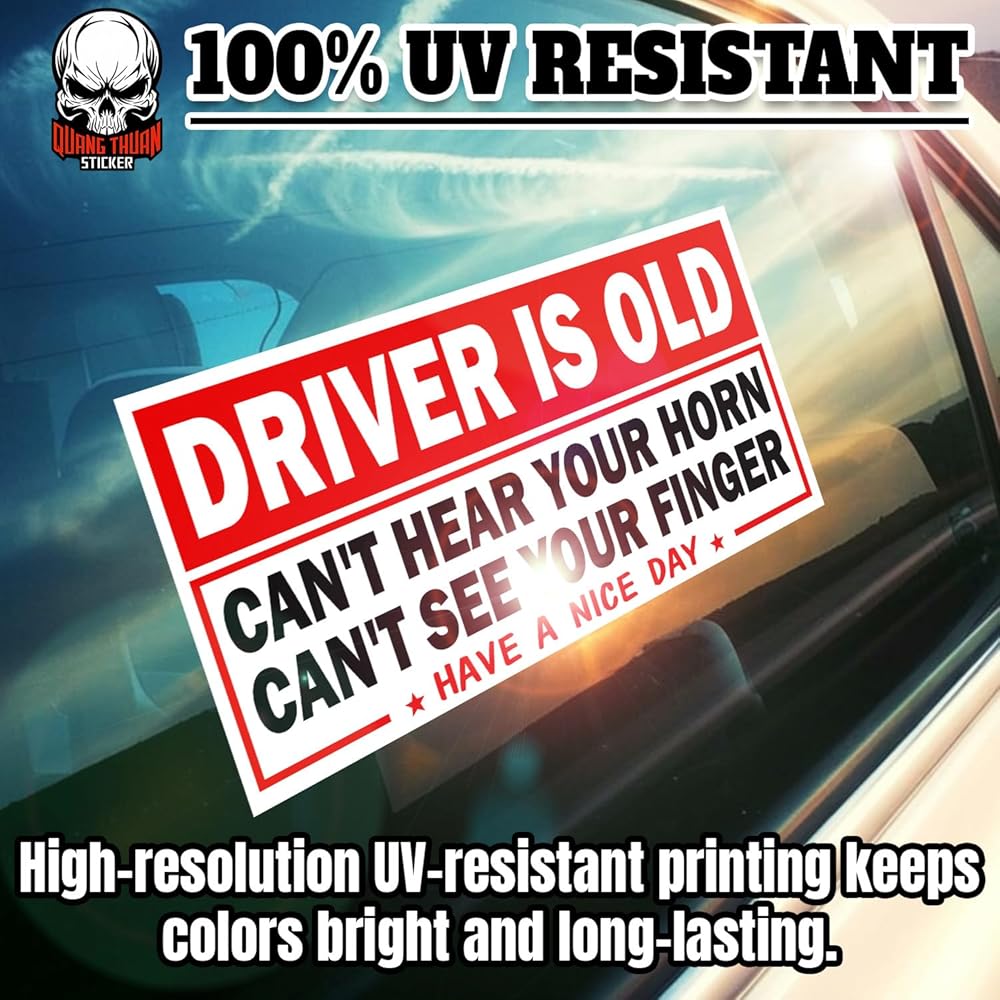 Enhance your style with our Driver is Old Can't Hear Your Horn Can't See Your Finger bumper stickers, designed to endure the elements while showcasing vibrant colors and sharp details. Perfect for personalizing vehicles, whether it is your car, truck, or RV. They can be removed cleanly with no residue left behind.