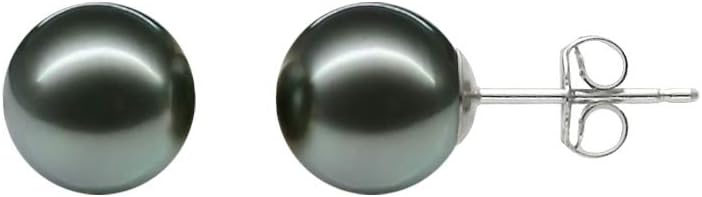 One of our best selling cultured pearl earrings, this pair of elegant Gray Japanese Akoya cultured pearl stud earrings are set in sterling silver. These Akoya cultured pearls are medium gray with light green overtones, AAAA quality, with high luster and clean surface. Make a stunning gift with this pair of cultured pearl earrings. The color is treated for an eye-catching look. This jewelry is hand made by our skilled jewelers in USA and quality controlled strictly by our cultured pearl experts. It comes with a high quality jewelry box and a certificate of authenticity.