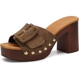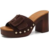 【Retro 70s Chic】 Elevate your style with these vintage-inspired platform mules. Featuring a classic suede upper and a bold oversized buckle, these sandals bring a sophisticated 70s retro vibe to any modern outfit.