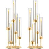 2 PCS 5-Arm Black+Gold Metal Table Candelabra Centerpiece, 22" Tall Clear Acrylic Candlesticks Holder with Shade for Valentines Day Events Party Table Centerpiece,Fit LED Candles