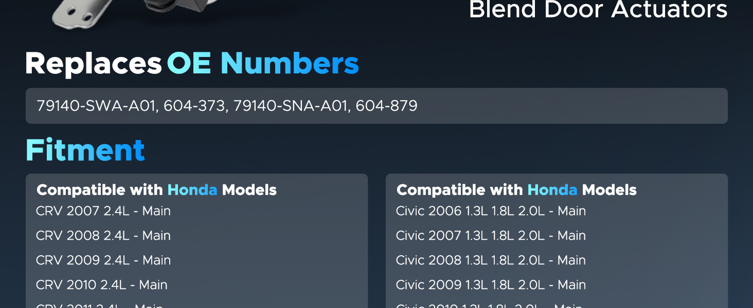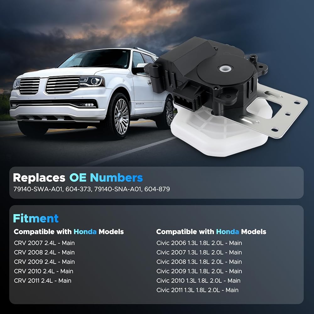 🚘Replaces OE Number: For 79140-SWA-A01, 604-373, 79140-SNA-A01, 604-879 This HVAC heater A/C blend door actuator is specifically for the Main - Mode position ("Main" - The air control of the front vents, "Mode" - Controls which vents have air flow, i.e. Floor, Panel or Front, Defrost, or any combination of those.)