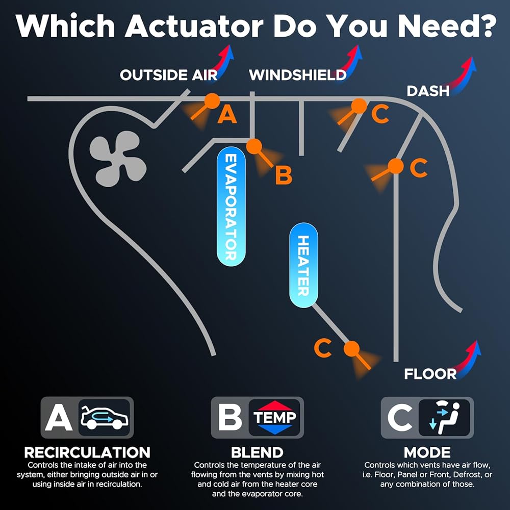 🔧Easy Installation: Direct replacement for factory HVAC heater A/C blend door actuator, need to recalibrate your HVAC system after installation. Note #Please verify whether it matches the position and function of the actuator that needs to be replaced before purchasing.