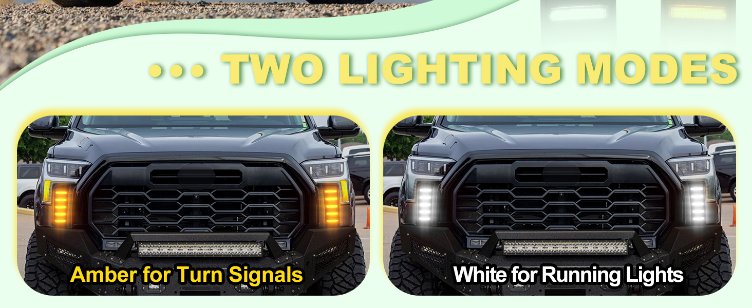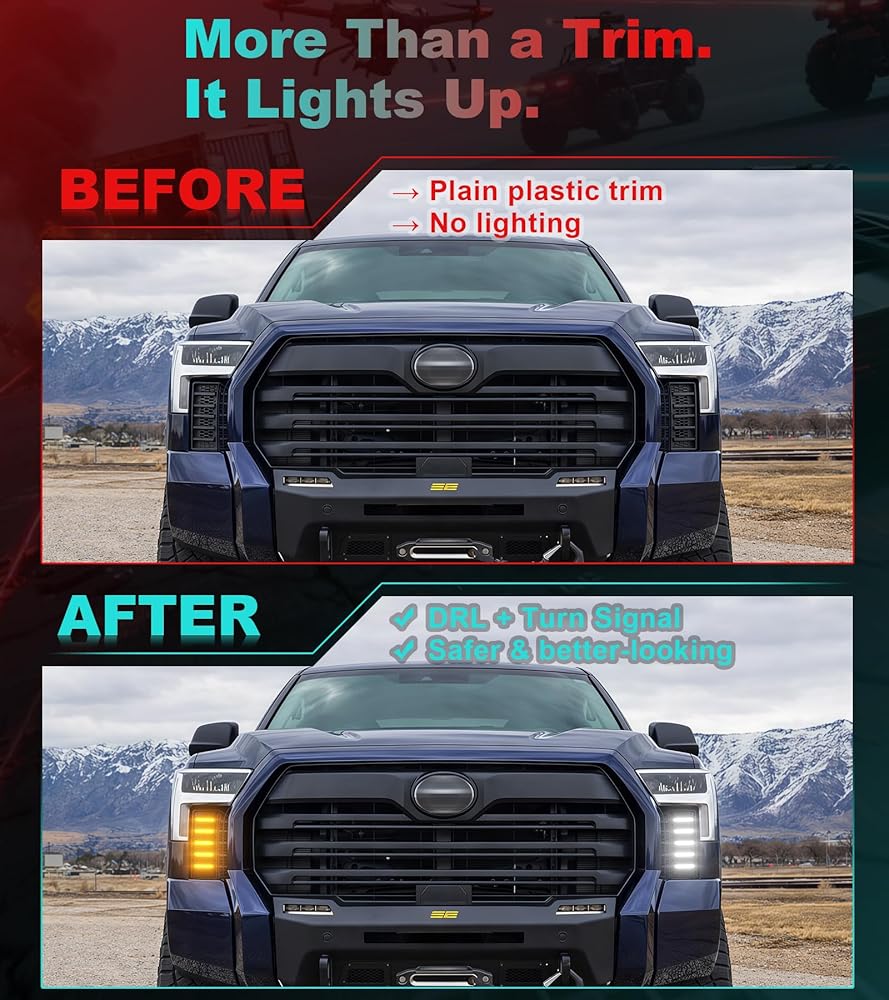 [Street-Legal Light Output]: Designed as compliant 2025 Tundra fog lights with a controlled beam pattern and soft amber turn signal output, improving side visibility while minimizing glare for on-road safet-y