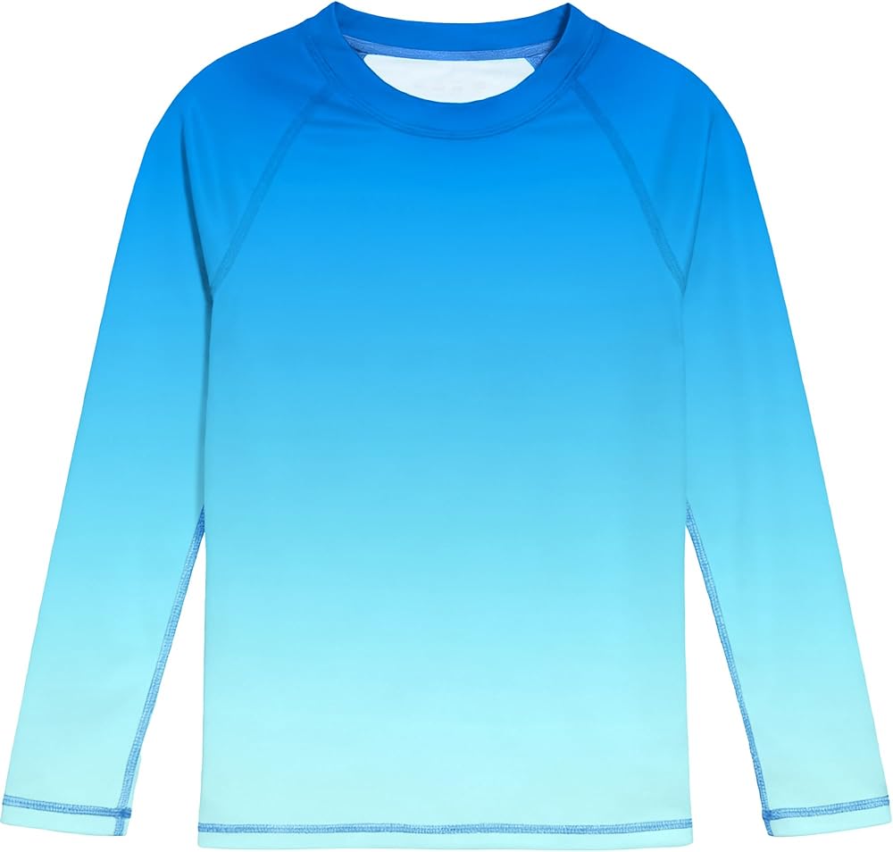 Vibrant Gradient Color Design: This boys long sleeve rash guard features a vibrant gradient design that stands out on the beach or at the pool