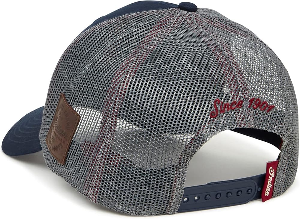 Indian Motorcycle Men's Script Patch Trucker Hat, Blue, One Size, Regular Fit, Snapback, Breathable Mesh, Embroidered Patch, Adjustable - 2861678,Blue