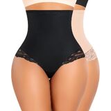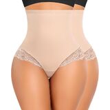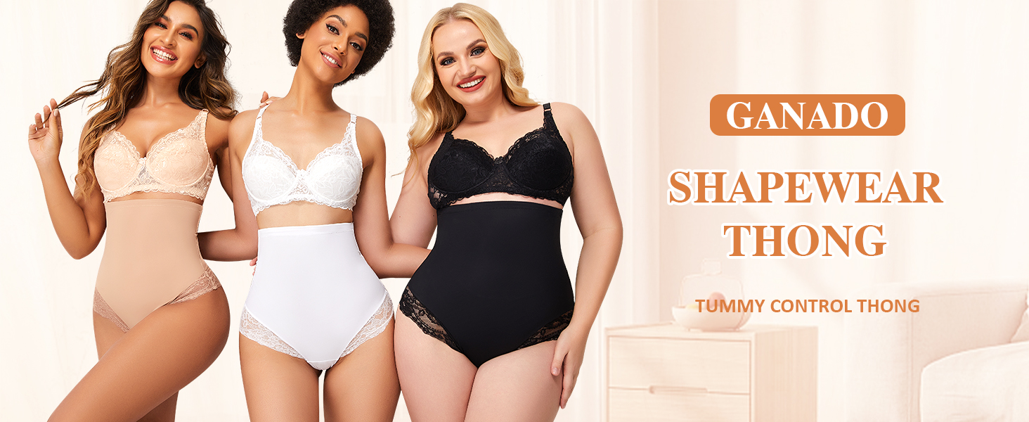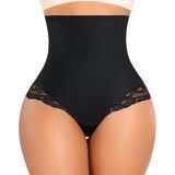 Ganado Tummy Control Thong Shapewear for Women Seamless High Waisted Thong Shaping Underwear Lace Panties Body Shaper