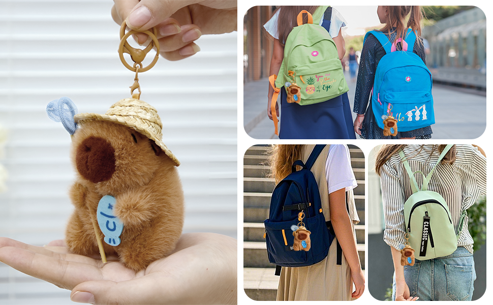 Versatile Use: Whether you're looking for a cute accessory for your tote, backpack, handbag, or purse, this capybara keychain is the perfect choice. It also serves as a unique car keychain or rearview mirror decoration.
