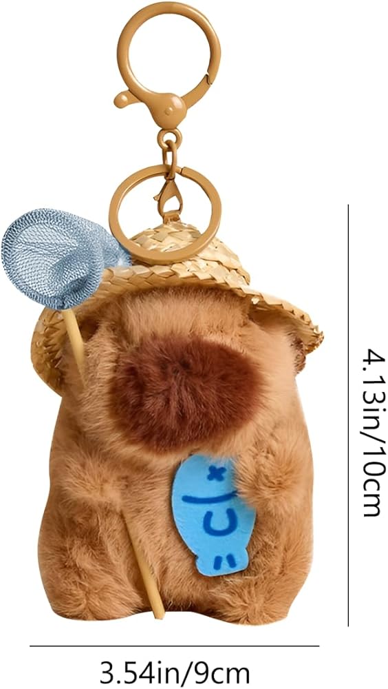 Cute Capybara Design: This adorable capybara plush keychain features a charming fishing capybara design, making it a delightful addition to your keys,bags or as a decorative item.