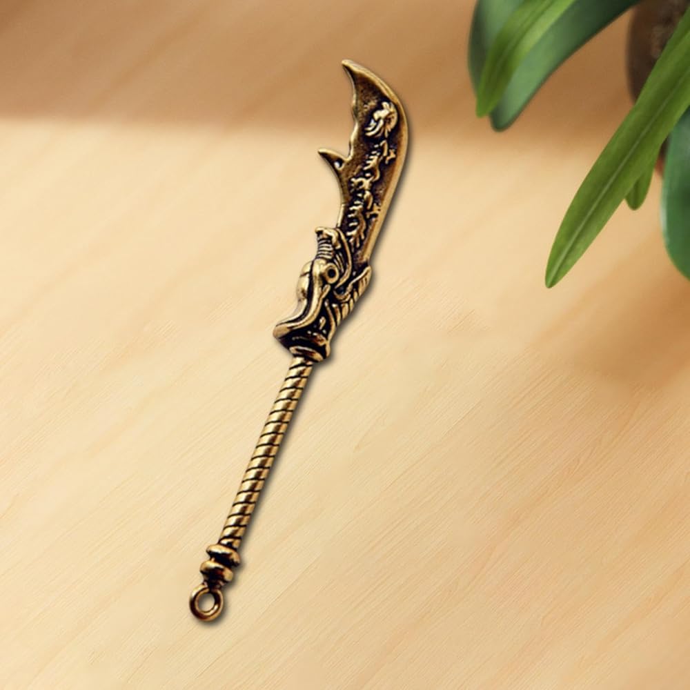 - 【 Brass Craftsmanship】:This keychain pendant features a detailed representation of the Guan Yu's Green Dragon Blade, crafted from brass for durability and an antique finish