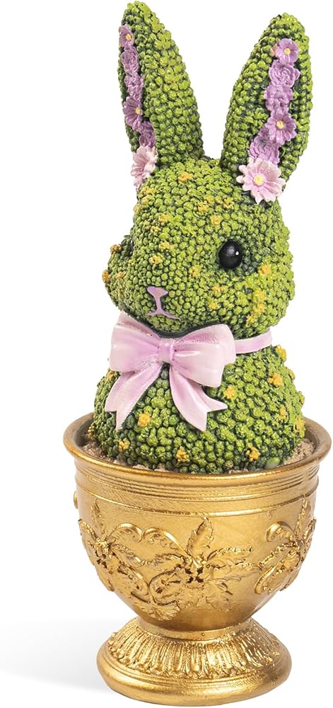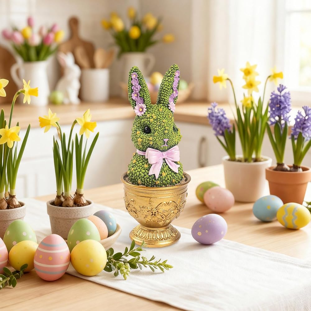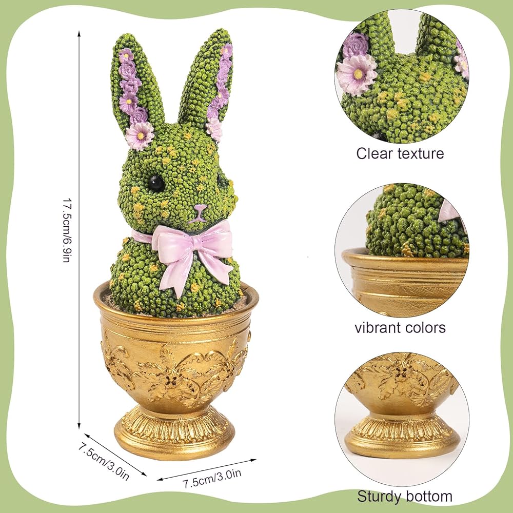 Premium Resin Material: Made of high-quality durable resin with a smooth finish, this Easter bunny figurine is sturdy, long-lasting, and easy to clean. The vivid green topiary surface adds a natural spring touch that perfectly complements your seasonal home decor.