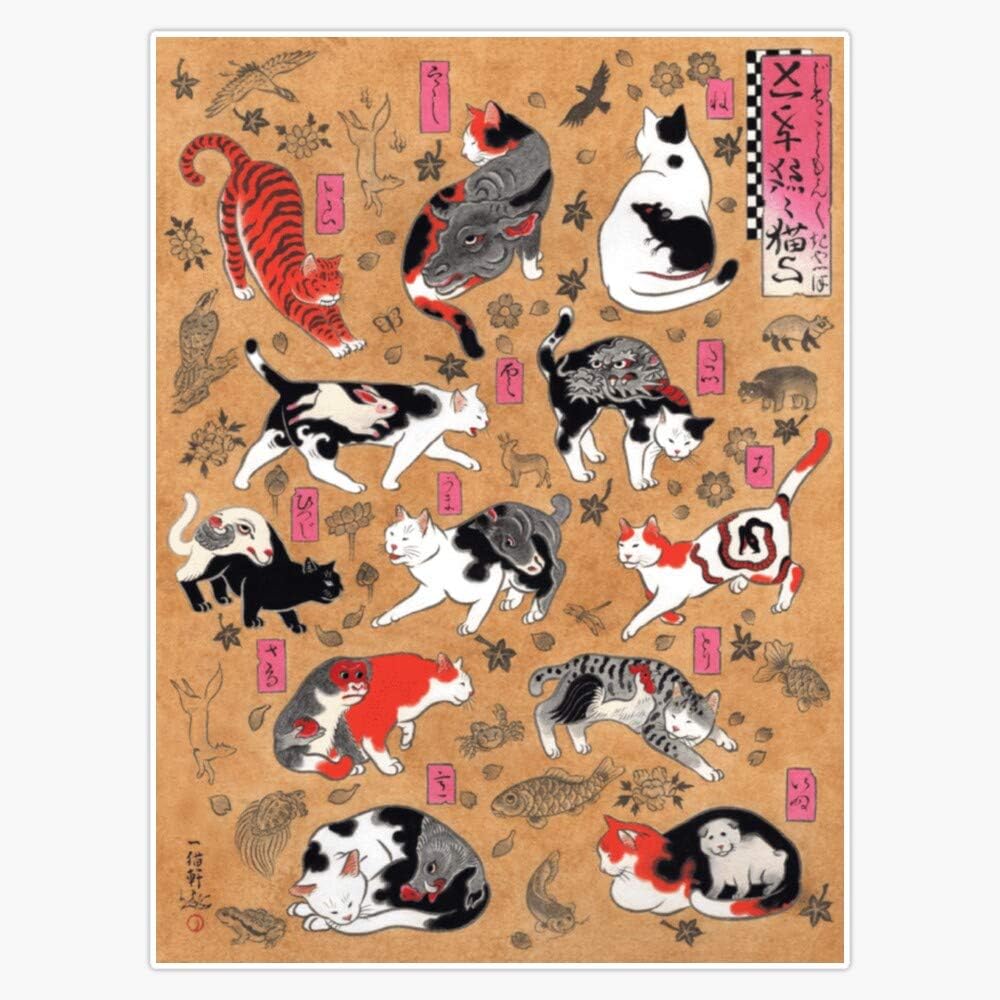 Leyland Designs قطط مطبوعة على شكل قطع خشبية يابانية عتيقة مع وشم ~ ملصق فلاش وشم قطة من الفينيل مُصنف للاستخدام الخارجي للنوافذ أو المصدات أو أجهزة الكمبيوتر المحمولة أو الحرف اليدوية 5 بوصات