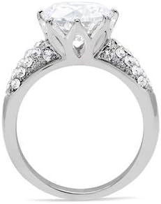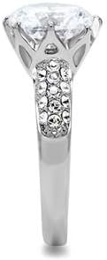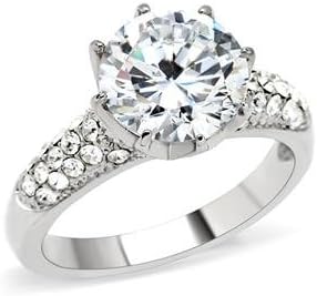 A dazzling assortment of crystals. This stainless steel ring features a stunning 10mm round cut cubic zirconia surrounded by smaller embedded crystals. A gorgeous gift to display your sentiments.