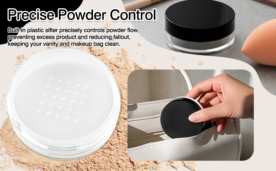 Equipped with a sifter insert to keep your powder in place and evenly textured, and a screw-top sealed lid to prevent spills or leaks when carried around.