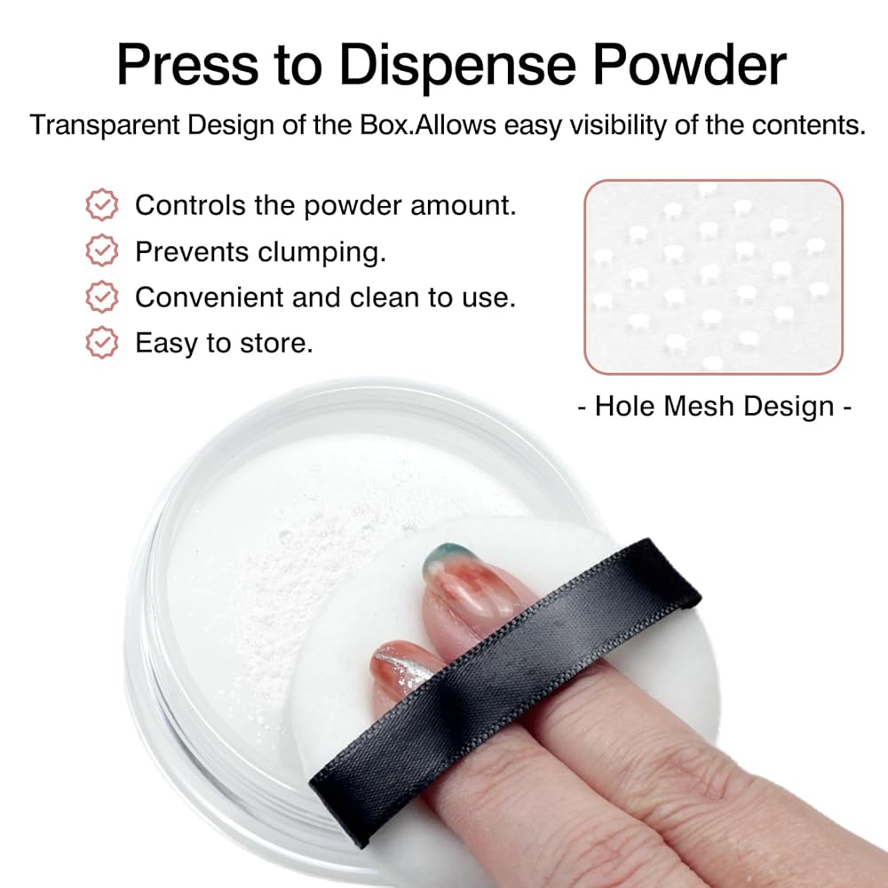 The transparent container body provides quick visibility of contents, while the included puff is soft, gentle, and perfect for delicate facial application.