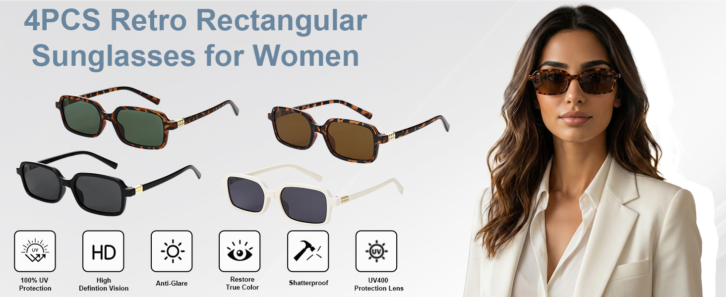 - 4 Unique Retro Styles: Sunglasses womens set includes square/narrow frames in grey/black/tortoise/green lenses