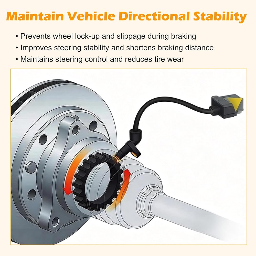 • Improved Steering Stability: ABS Wheel Speed Sensor can maintain vehicle directional stability, prevent wheel lock-up and slippage during braking, shorten braking distance, maintain steering control force, and reduce tire wear.