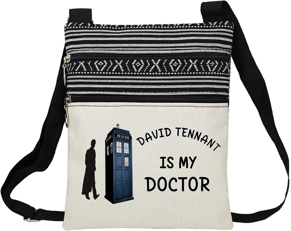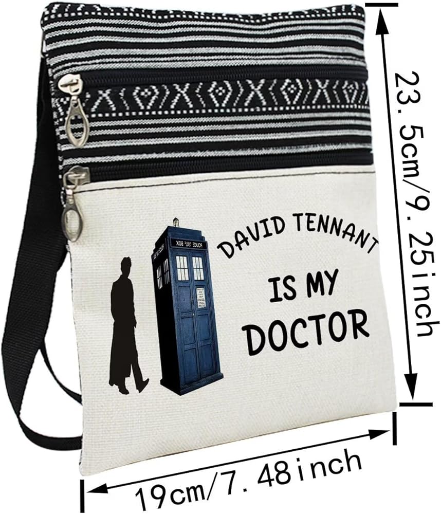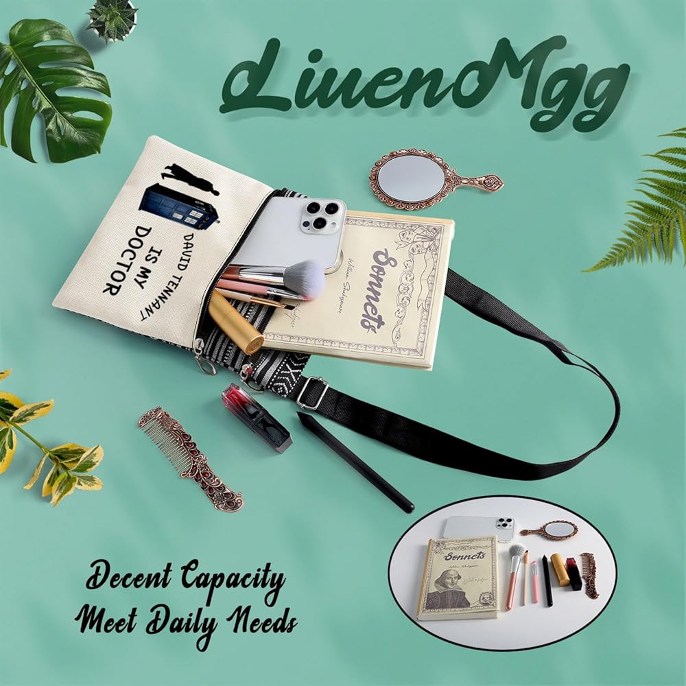 LiuenMgg Who TV Show Small Multi-functional Crossbody Bag for Women. Our crossbody bag is made of durable and lightweight polyester fiber. The bag has a main zipper pocket and an additional small zipper pocket in front. The zippers of the bag are of high quality, and the shoulder strap is adjustable, with a minimum length of 30 CM (11.8 in) and a maximum length of 60 CM (23.6 in). The size of the bag is 23.5 CM (9.25 in) * 19 CM (7.48 in) * 1 CM (0.4 in) . It can perfectly hold your little personal stuffs like cellphones, air pods, lipsticks, cards, keys, wallets, coins, tissues, passports, etc. The patterns on the bags are colorful and vivid. Carrying this bag may makes you look great and fashionable. When we go out, we will definitely need a portable bag to hold your personal effects. Thus our bags, combining practicability and aesthetics, are a good choice, no matter for personal use or for gift idea.