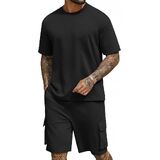 【Fashion Tracksuits】: Mens basic tee shirts featuring with round neck, shorts sleeves. The mens casual cargo shorts with side pockets in a simple fit with an elasticated waistband to keep you on the move. Reversible side cargo flap pockets allow you to carry your keys, phone, wallet, earphones and more.Convenient for workout.