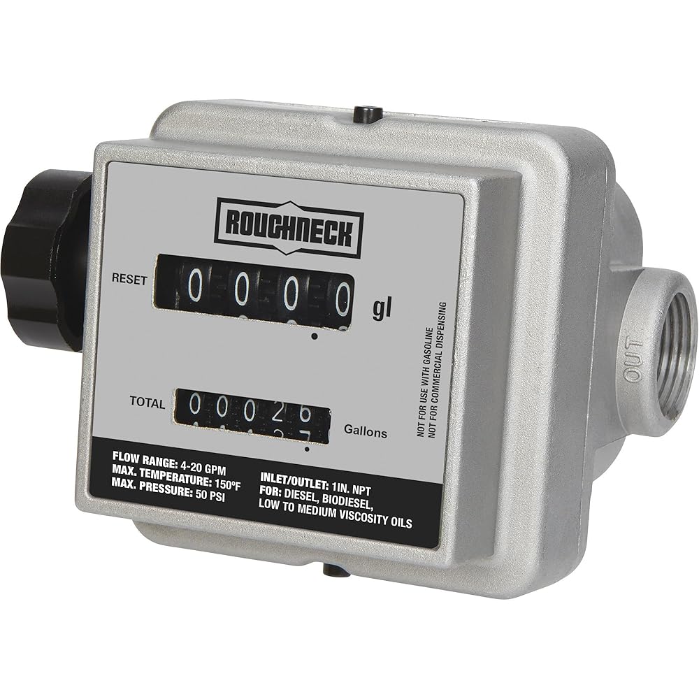 The Roughneck Mechanical Fuel Meter features a 3-port design that can be installed inline or at a 90° angle. Its nutating disc mechanism offers a high tolerance to fuel contamination. Strong aluminum die-cast construction delivers years of service.
