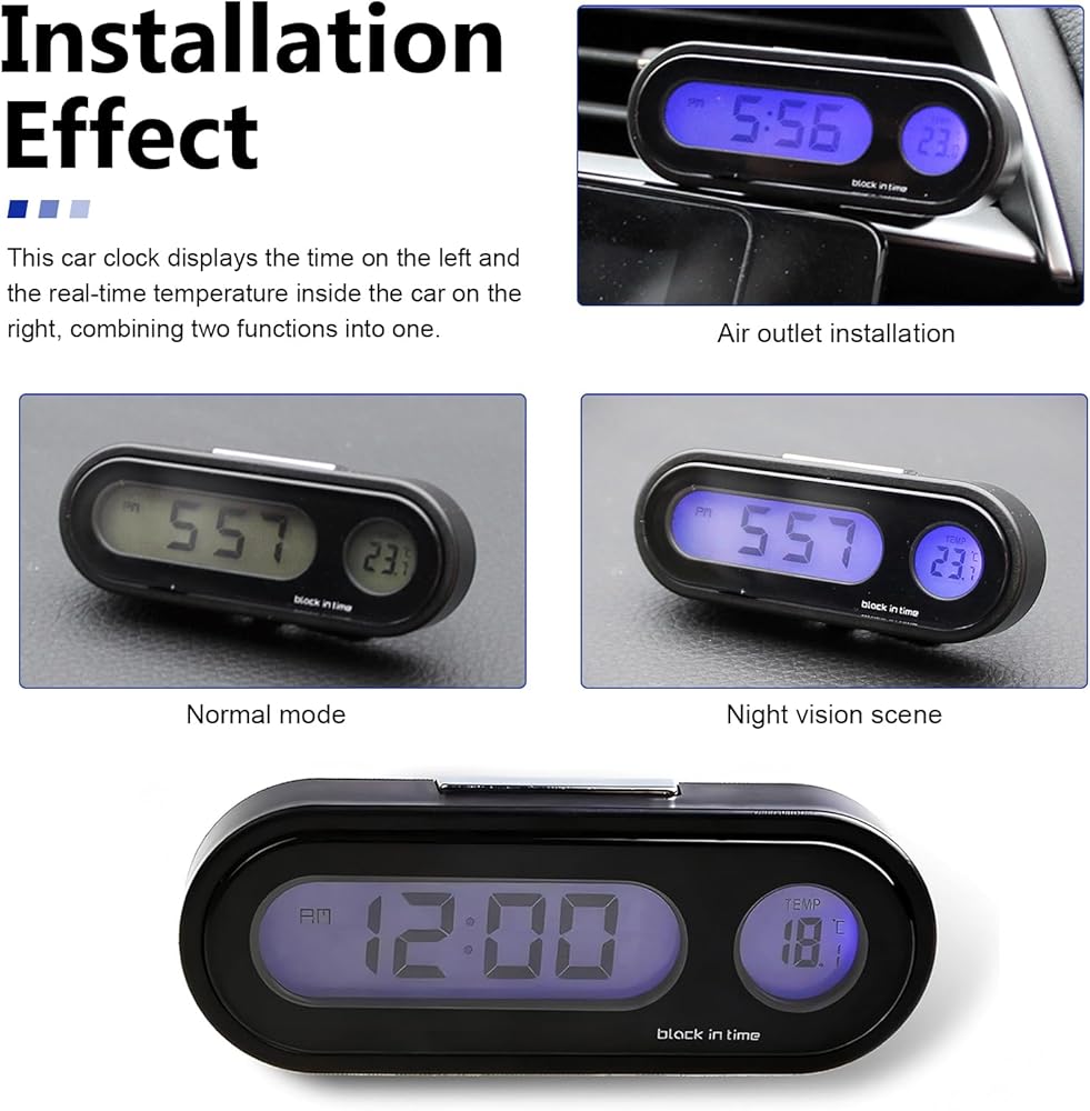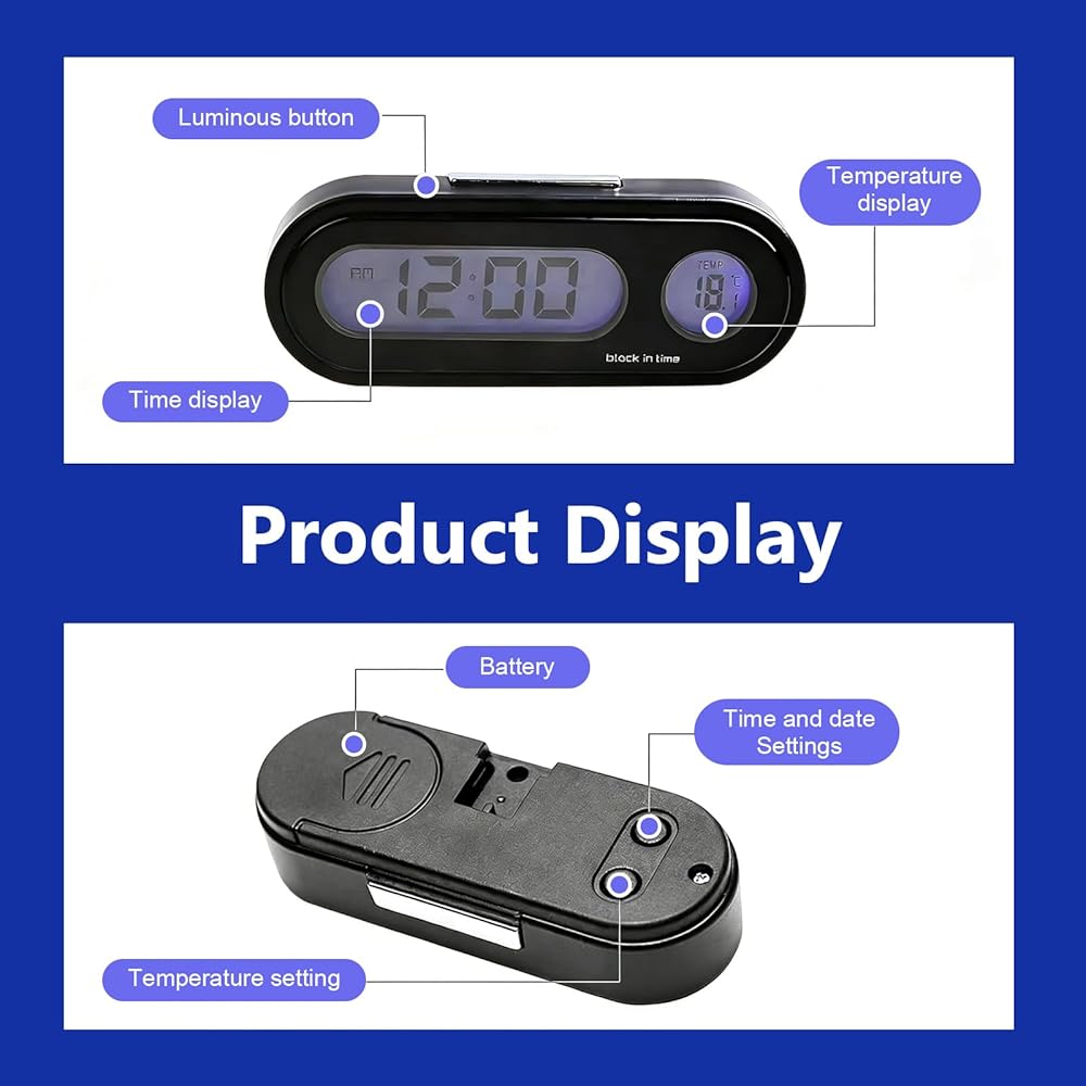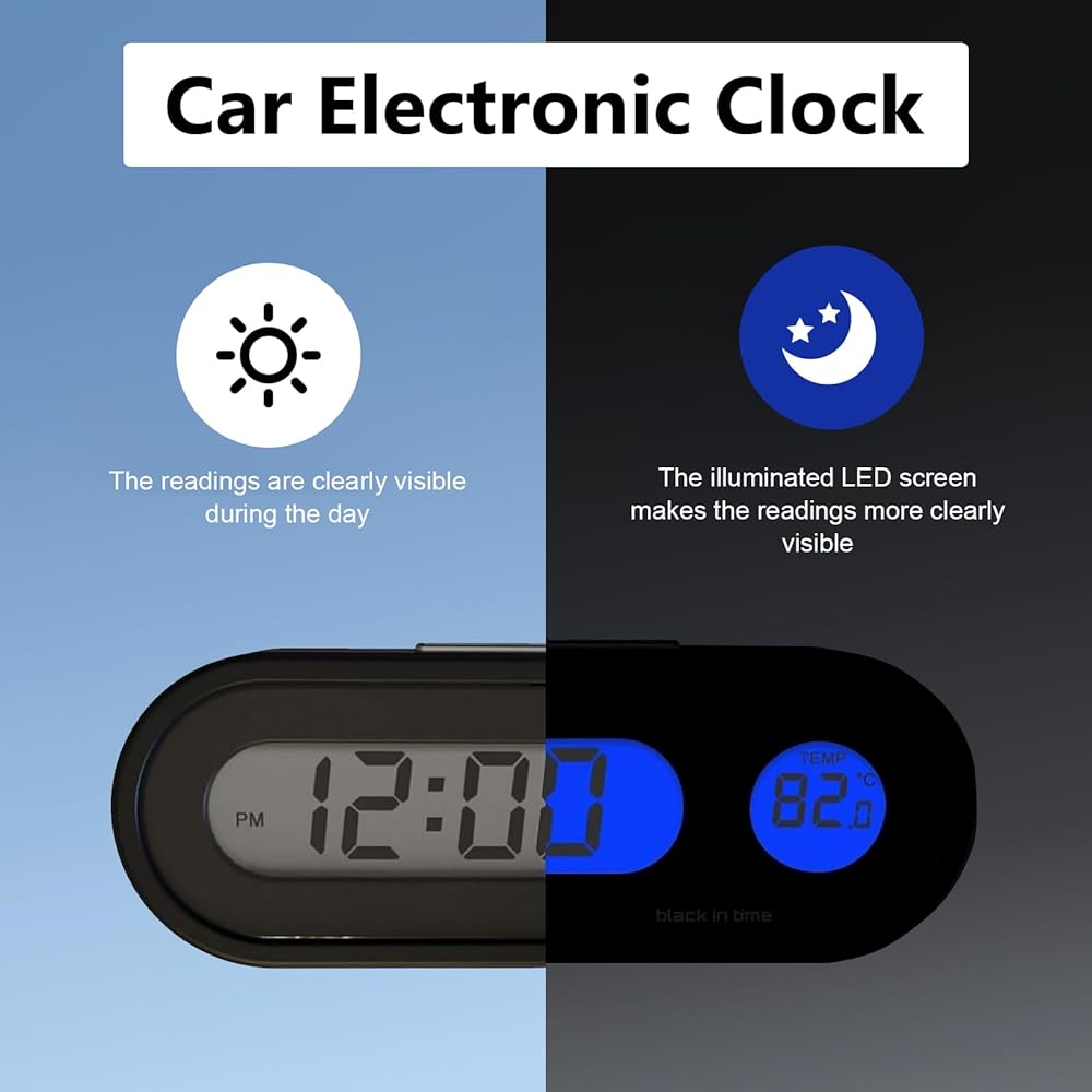 This car dashboard digital clock is a practical 2-in-1 accessory that combines accurate timekeeping with real-time temperature monitoring. It helps drivers stay informed without distraction, making every journey more comfortable and organized.