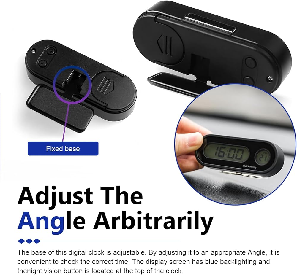 Installation is a quick, one-time task. Clean your dashboard surface, attach the adhesive base, and snap the clock into place. The adjustable neck lets you point the display right at you for the clearest view.