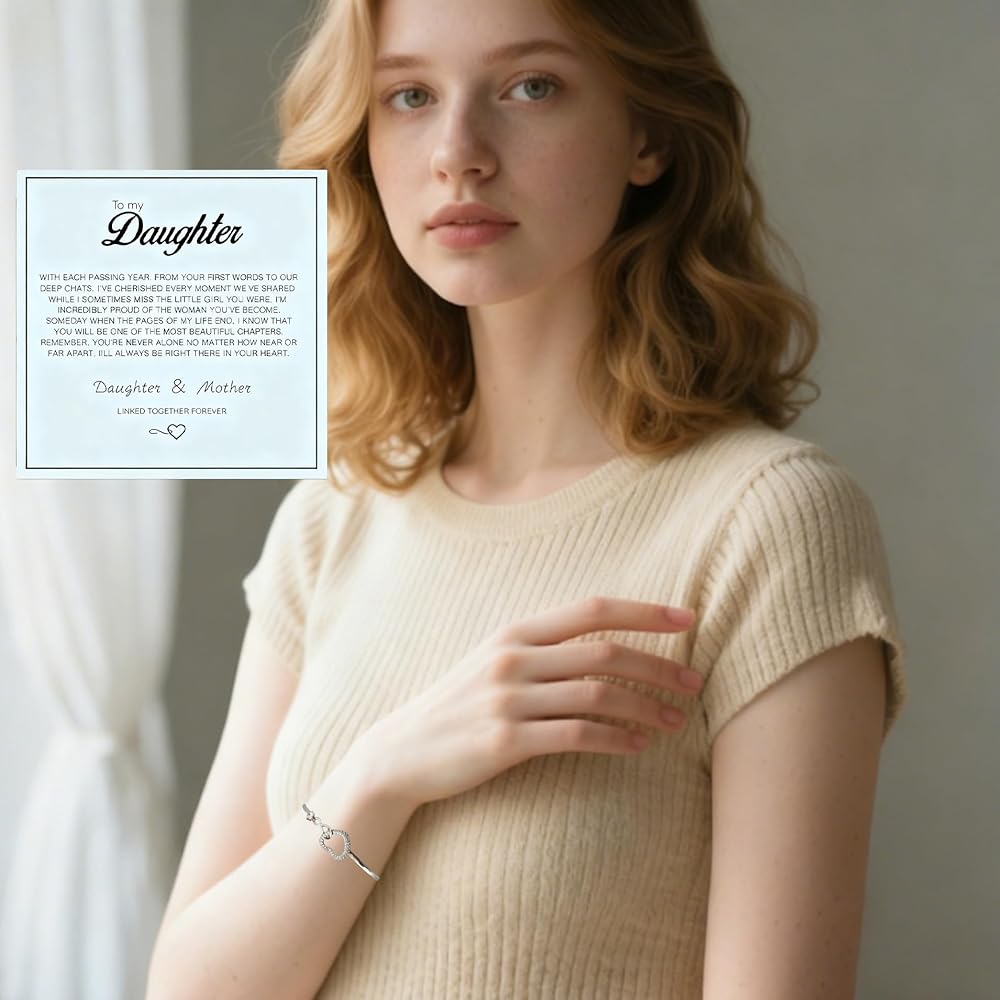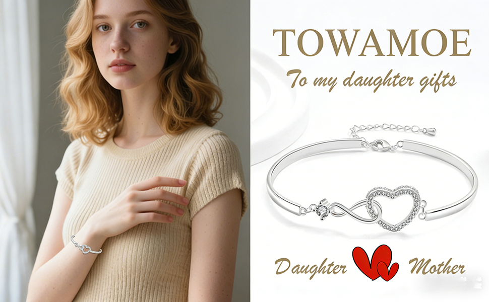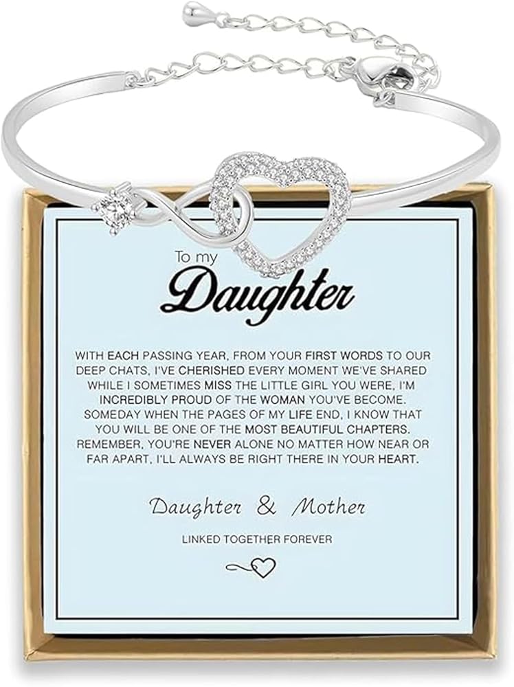 ♥To My Daughter Forever Connected Bracelet: Adorned with an intertwined infinity & heart design (inlaid with shimmering cubic zirconia), It is a simple and cute bracelet gift for your daughter, represents your eternal bond between you and your daughter.It is perfect for sharing unspoken love with your daughter.