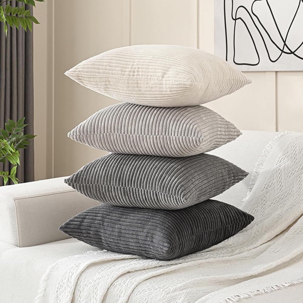 Size & Material: This set includes 4 pillowcases (inserts not included), each measuring 18x18 inches. Made from silky soft corduroy, they are comfortable and long-lasting, with tight stitching and no loose threads