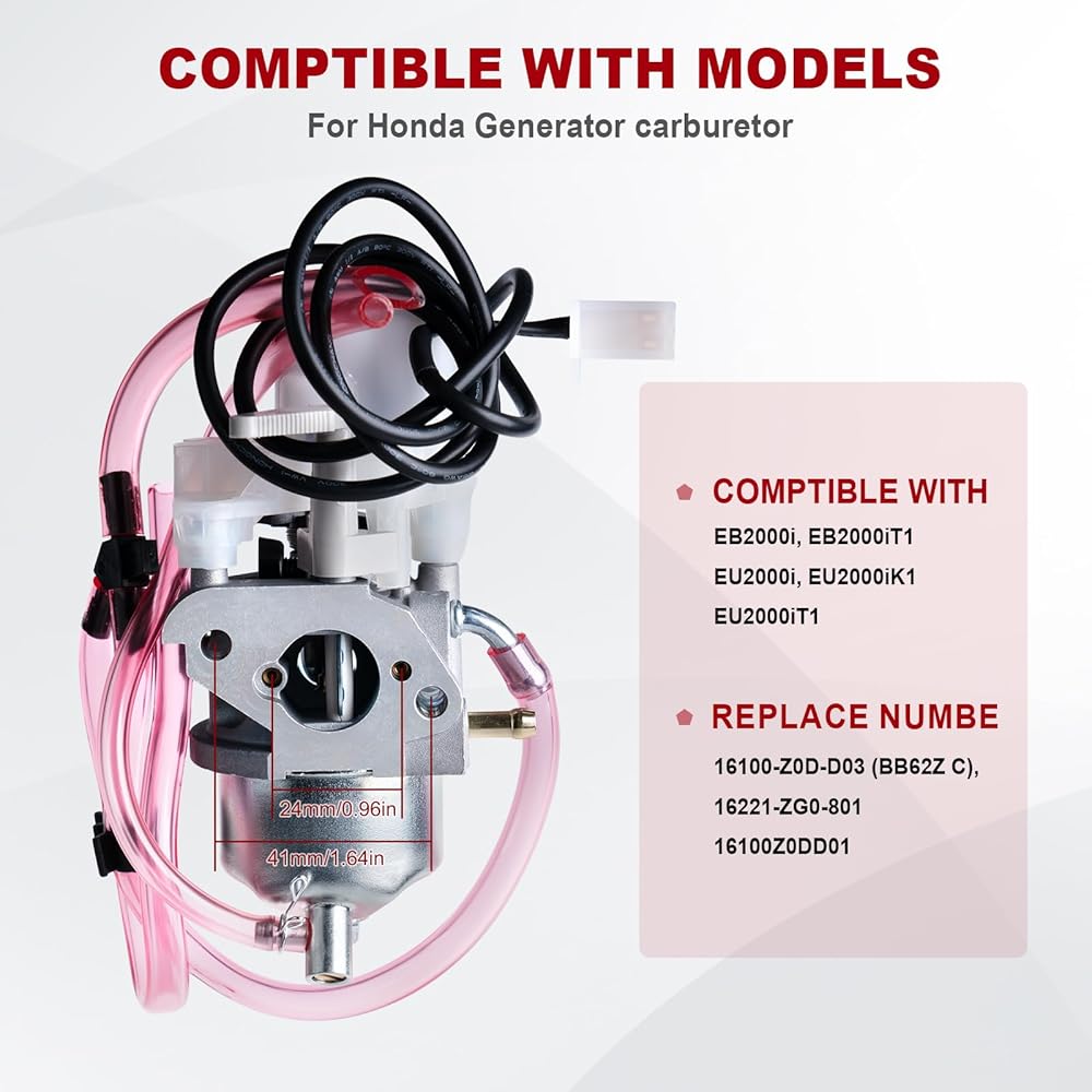 EU2000i Carburetor for Honda Generator EB2000i EU2000i EB2000I EU2000I EB2000IT1 EU2000IK1 EU2000IK1 16100-Z0D-D03 16100-Z0D-D01 with Air Filter Spark Plug Gasket Rebuild Kit