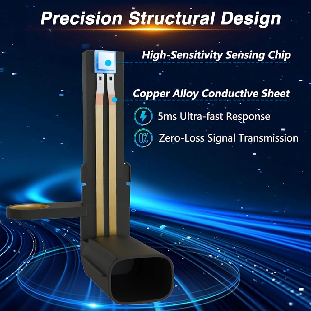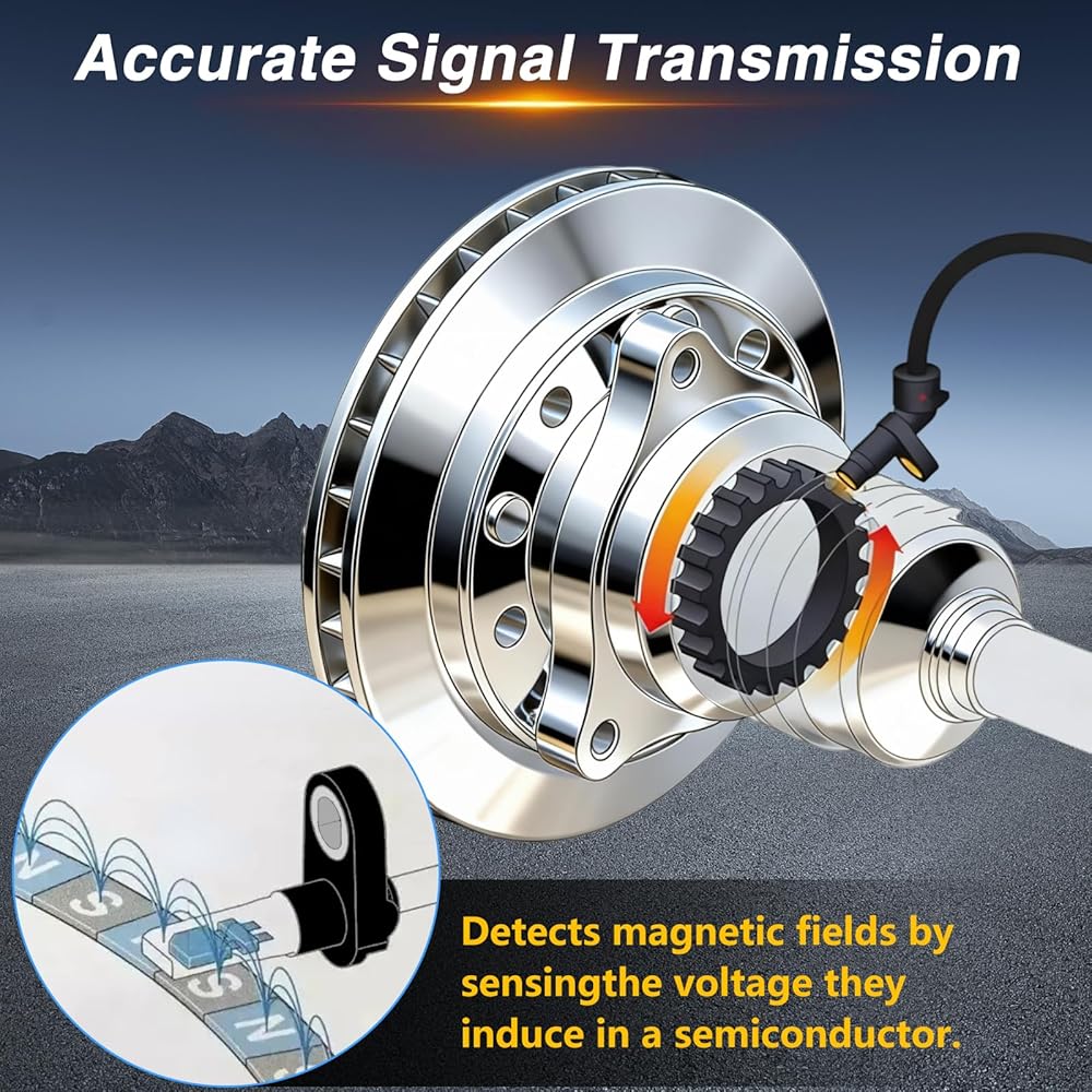 【5ms Ultra-Fast Response】:This ABS speed sensor is equipped with a high-sensitivity chip and a high-purity copper alloy conductive plate, with a response time to wheel speed changes as low as 5 milliseconds. This ensures that the ABS system accurately captures changes in wheel speed, eliminating brake delay issues caused by signal loss and significantly reducing the risk of side slipping on rainy, snowy, and slippery roads.