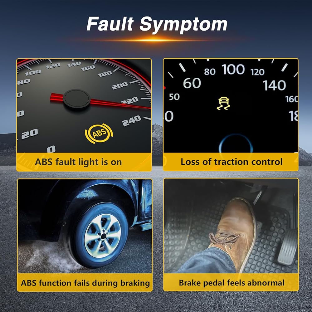 【Fault Symptom】:When the ABS wheel speed sensor malfunctions, the following symptoms may occur: the ABS fault light is constantly on/intermittently illuminated; the ABS function fails during braking, resulting in wheel lockup; the speedometer displays abnormally; and the electronic control unit (ECU) stores fault codes, among others.