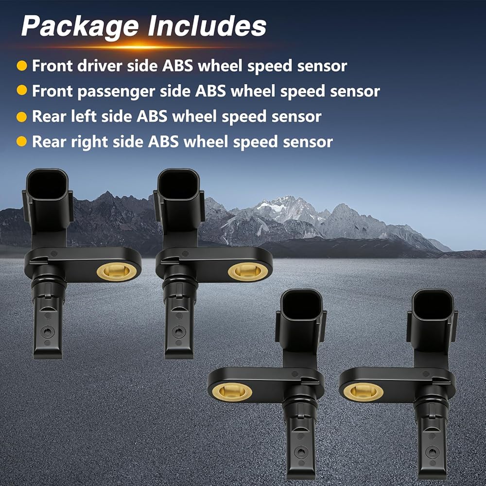 【Package Includes】: Front driver side ABS wheel speed sensor, front passenger side ABS wheel speed sensor, rear left side ABS wheel speed sensor, rear right side ABS wheel speed sensor.