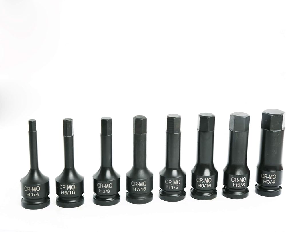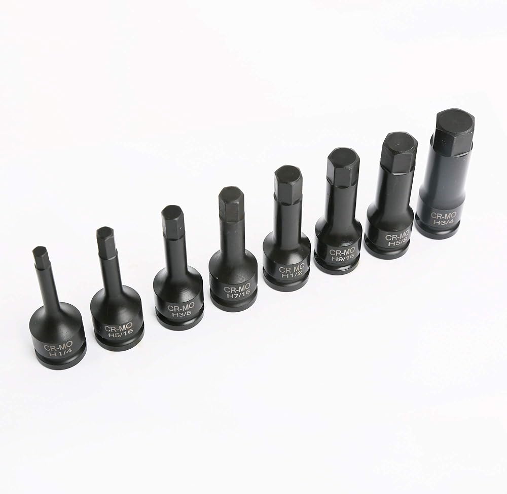 1/2" Drive Impact Socket Hex Bits | 8pc SAE Set Standard Long Air Allen Driver