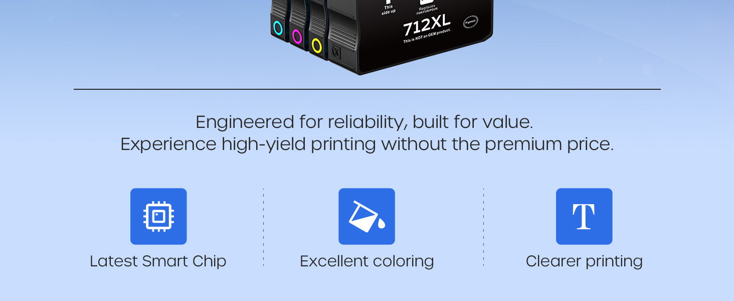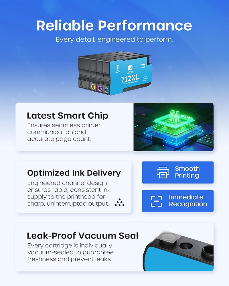 - Latest Chip Version: Each 712XL ink cartridges for printers work with the latest chip to ensure flawless compatibility with your printer.