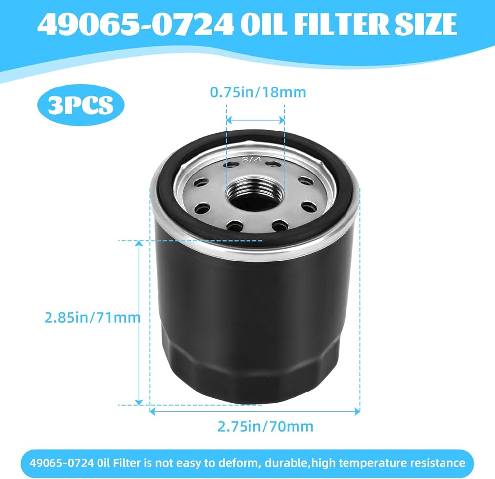 【REPLACEMENT MODELS】This 3-pack of 49065-0724 oil filters for Kawasaki can perfectly replace 49065-7010, 49065-0724, KM-49065-0724, KM-49065-7010, 49065-2057, 49065-2062, 49065-2071, 49065-2078, AM107423, AM101001, AM101054, AM105172, AMK107423, AM147597, AM105555, effortlessly meeting diverse replacement needs