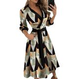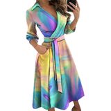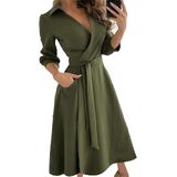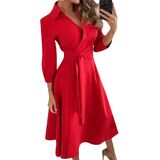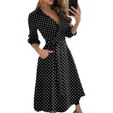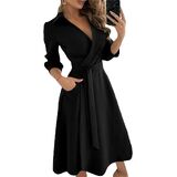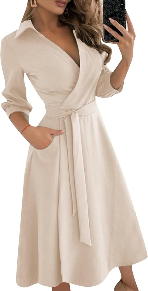 Features: Women's casual dresses with lapel v collar, 3/4 sleeve, high waist, two side pocket, unique and swing.