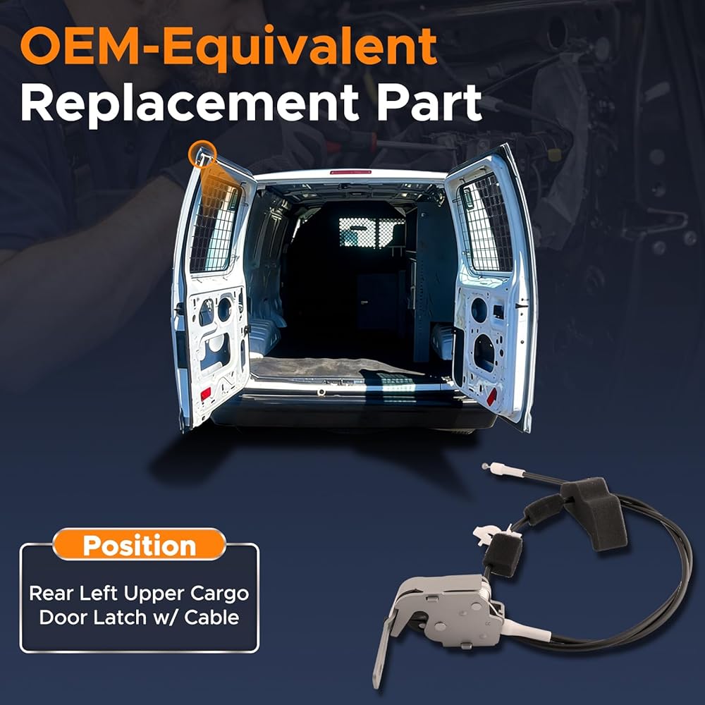 Driver Side Upper Trunk Door Latch with Cable Compatible with Ford E150 E250 E350 1992-2009 Cargo Left Lock Replaces for 6C2Z-1543286-AA, 6C2Z1543286AA